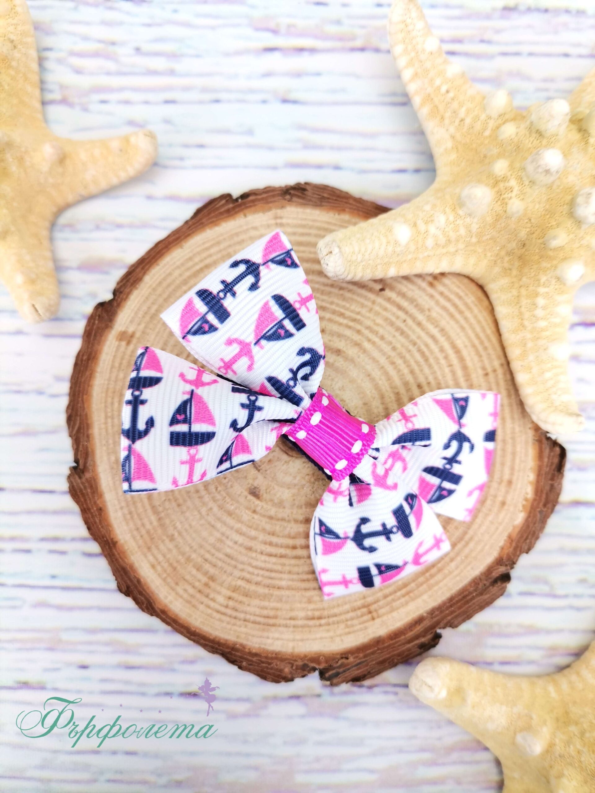 Ефектна ръчно изработена морска фиба с плаващи розови лодки по нея. Весела панделка за коса за морските плажове и знойното лято.