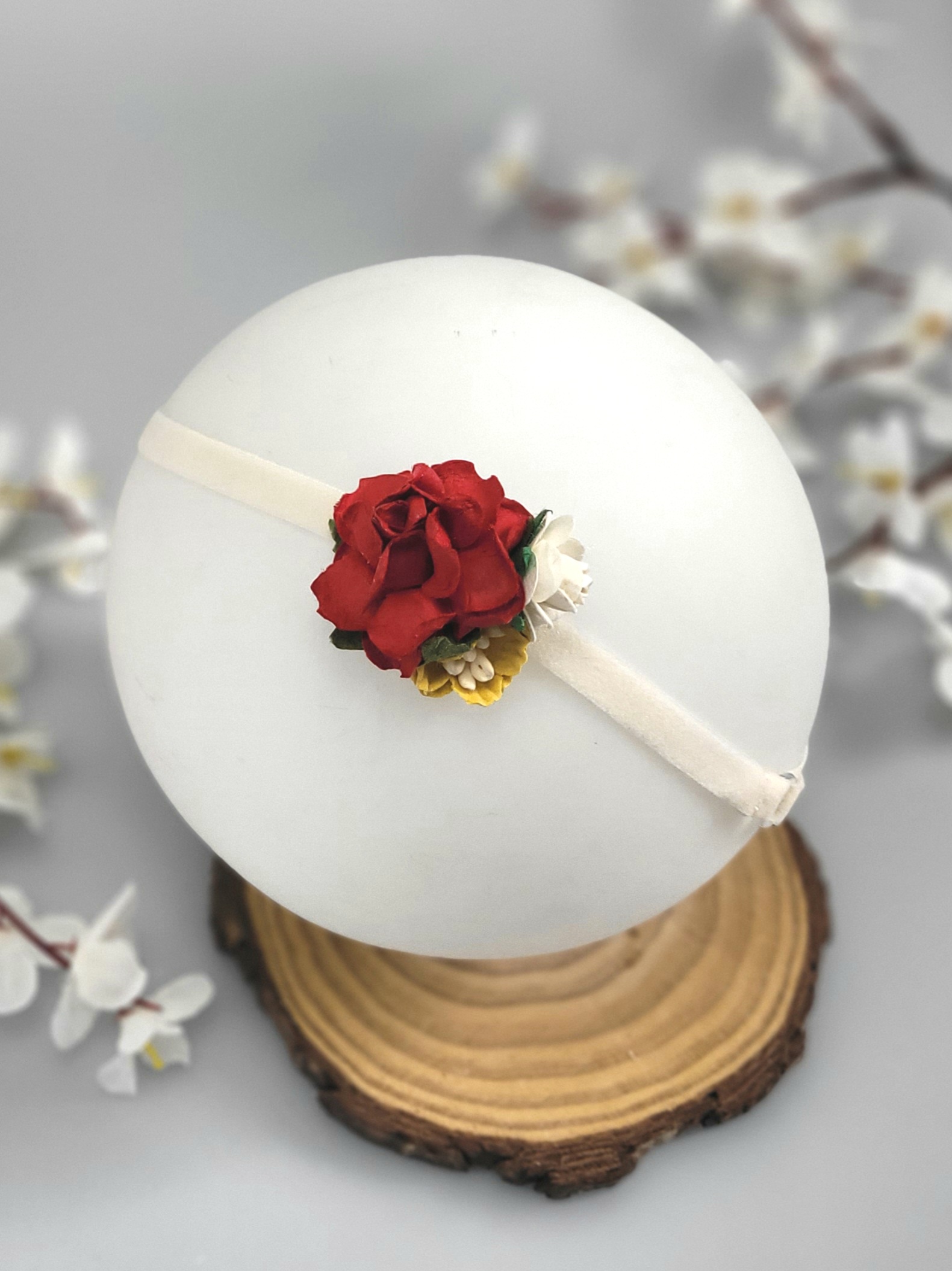 Ефектна ръчно изработена бебешка лента в тъмно червено. Стилен аксесоар за коса за малки деца и бебета.Ластичната лента е с регулираща се дължина и подхожда на всяка глава.