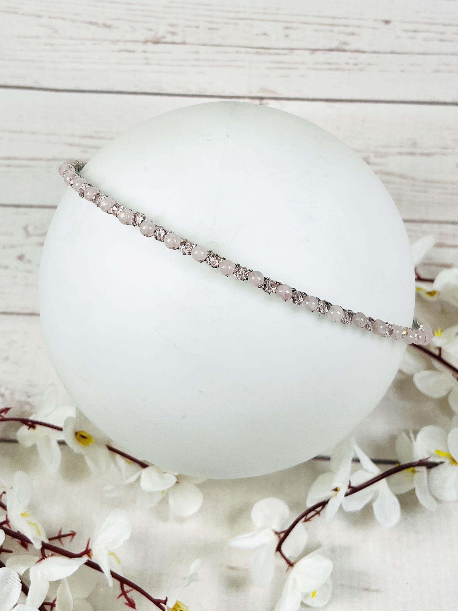 ДИАДЕМА С РОЗОВ КВАРЦ И КРИСТАЛИ