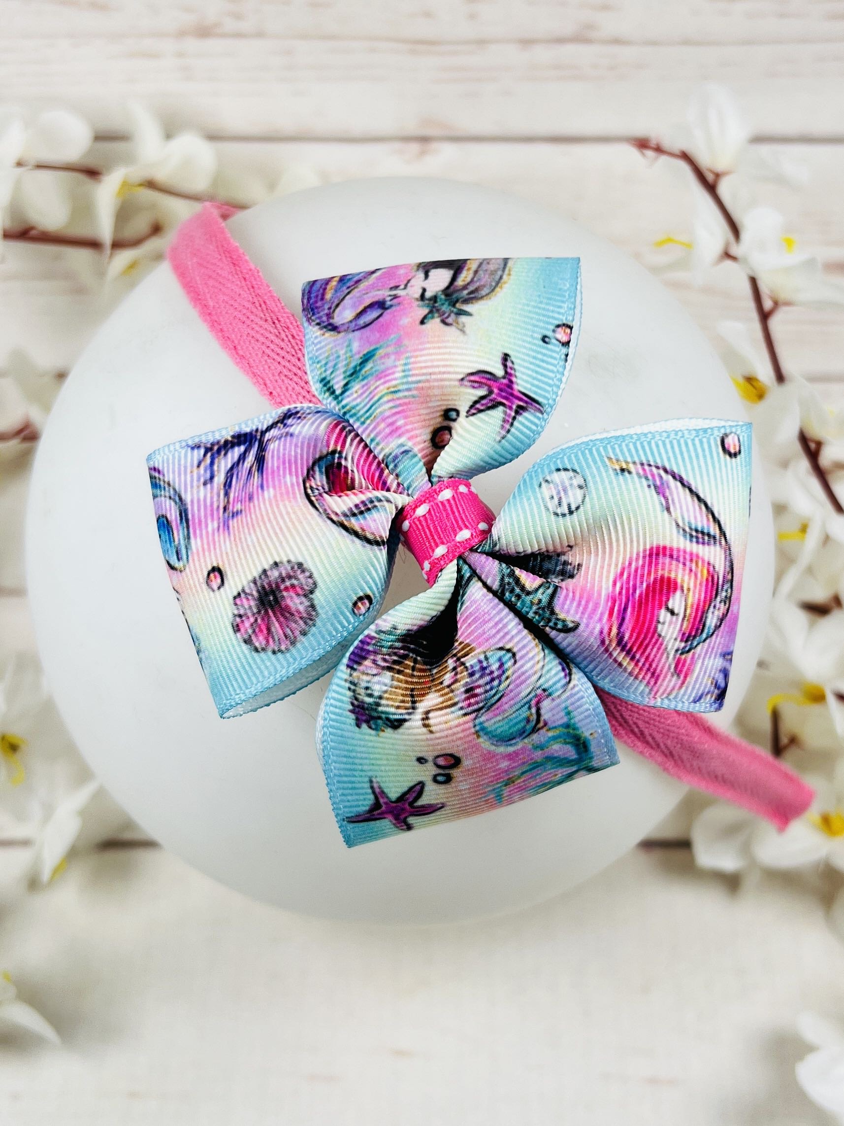 Диадема ръчна изработка с шарени русалки русалка. Рибешки дизайн в нежно лилаво, розово и мента ще зарадват всяко дете. Облечената диадема е комфортна за носене от малки и големи.