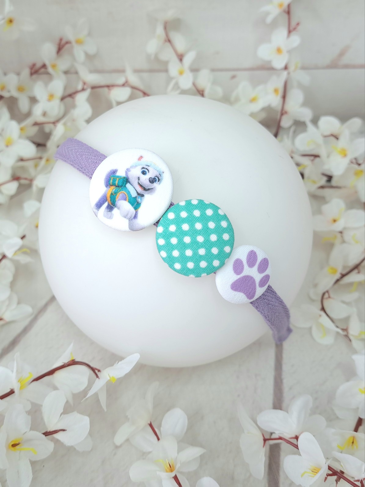 Весела ръчно изработена диадема с копчета с Еверест от Пес Патрул. Прекрасен подарък със или без повод.