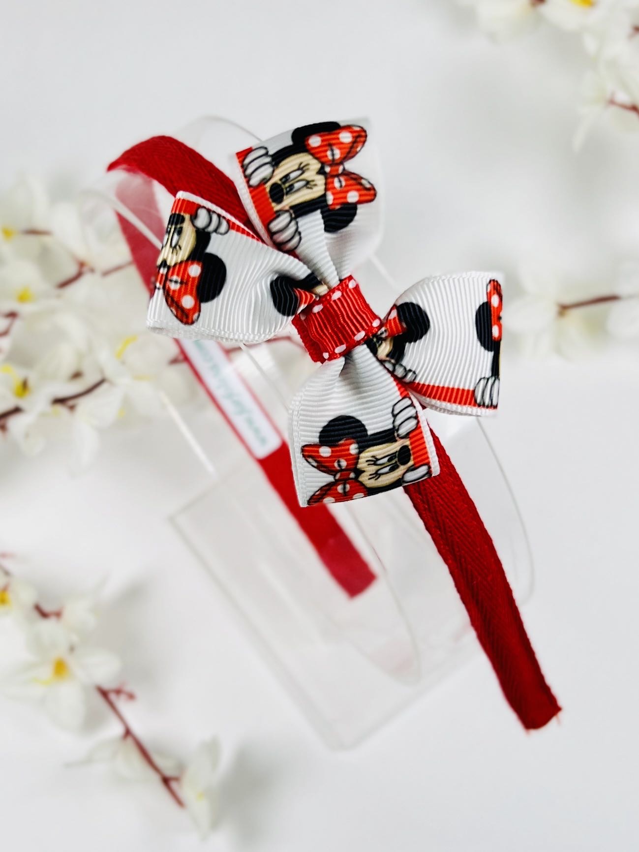 Чудеана диадема ръчна изработка с приказен диазайн с Мини Маус. Панделката е поставена на фиба и после на диадемата. Веселия принт е подходящ за специални поводи и маскен бал.