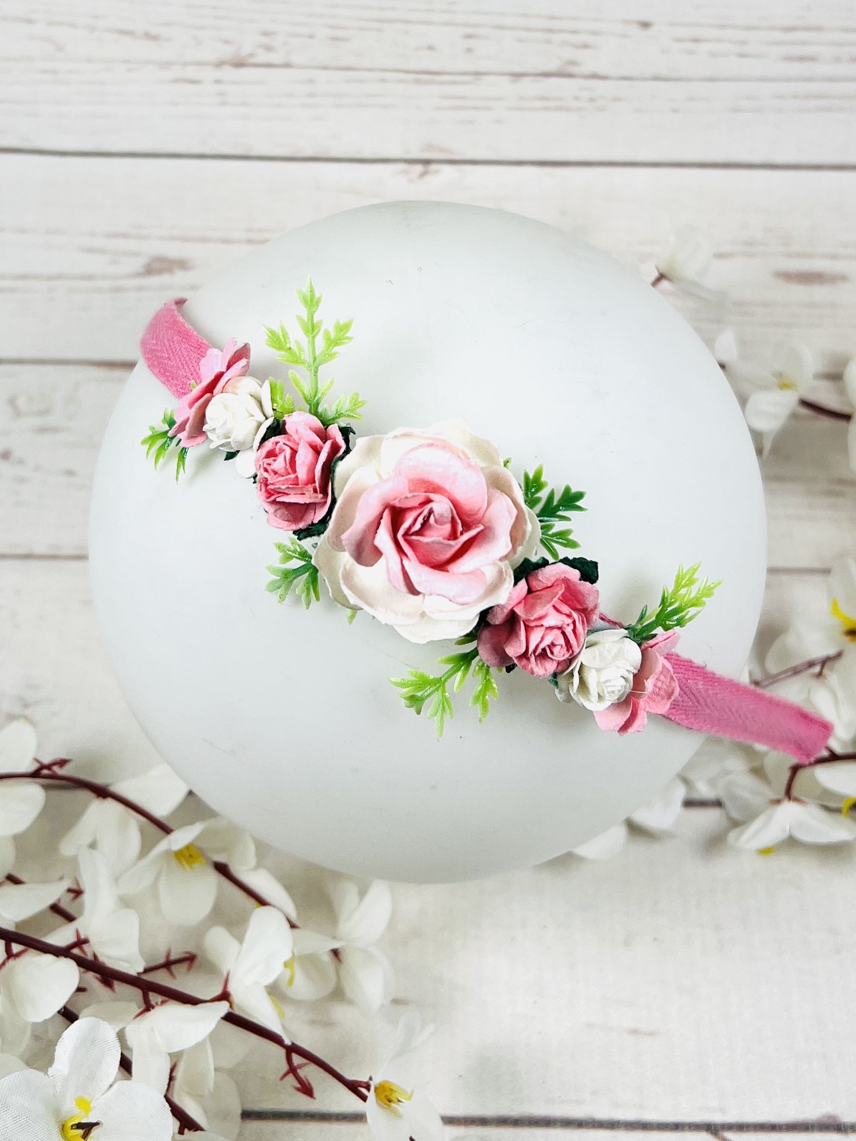 Прекрасна ръчно изработена диадема с цветя в нежни бели и розови цветове. Прекрасен аксесоар за коса за любима жена.