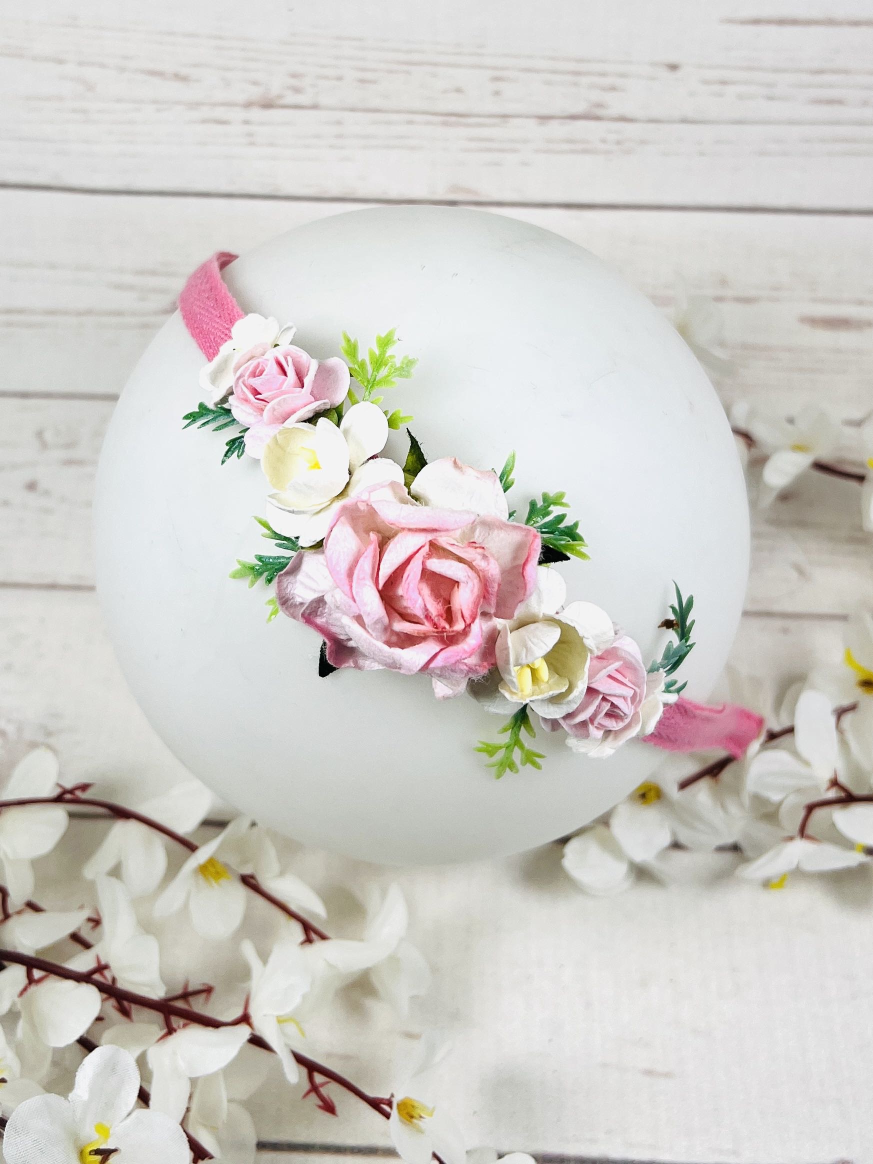 Нежна ръчно изработена диадема с цветя в розово и бледо жълто. Красив аксесоар за коса за малади дами и деца.
