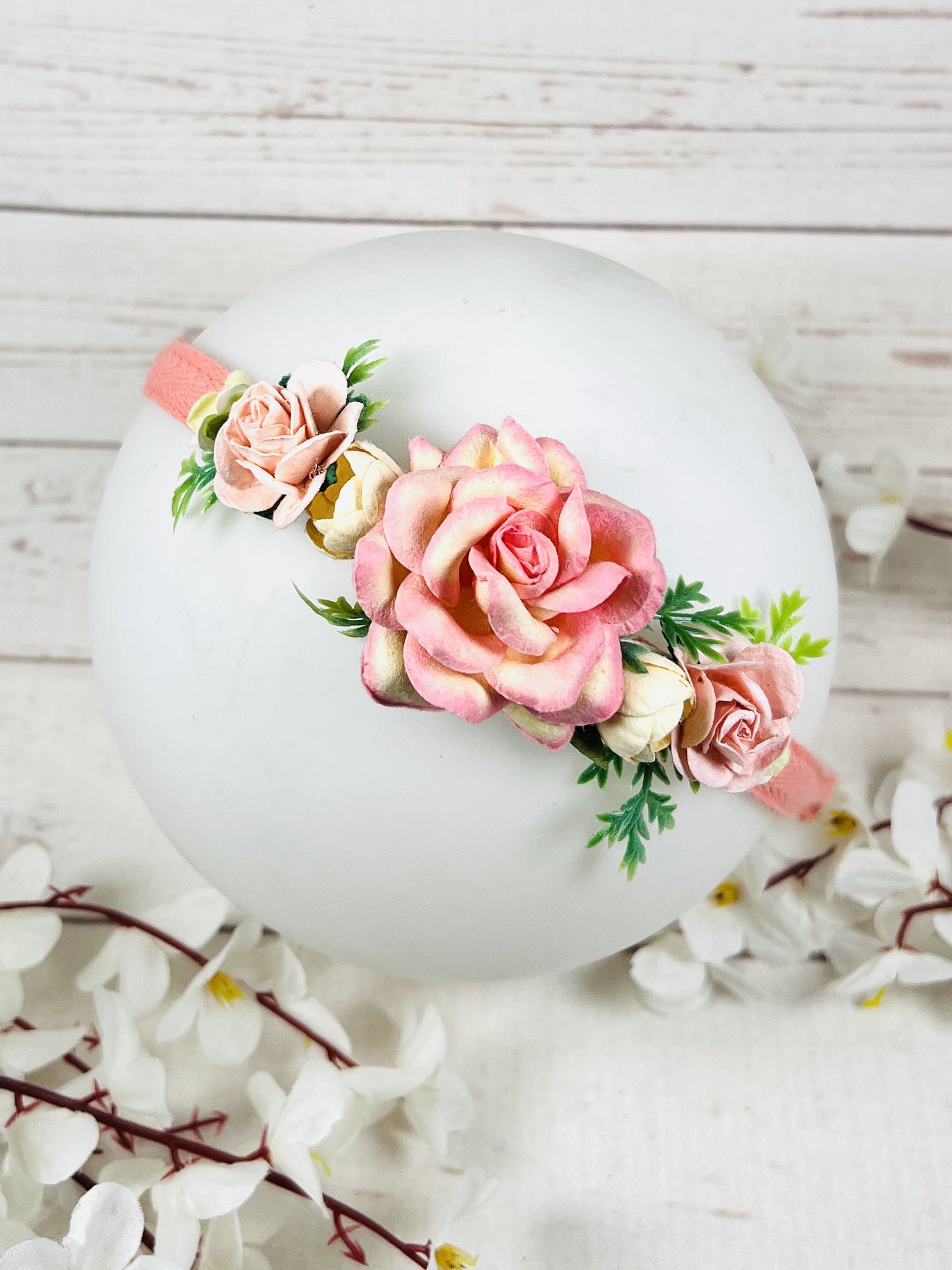 Захарна ръчно изработена диадема с цветя. Нежни цветове греят върху розите и дават усещане за захарен памук.