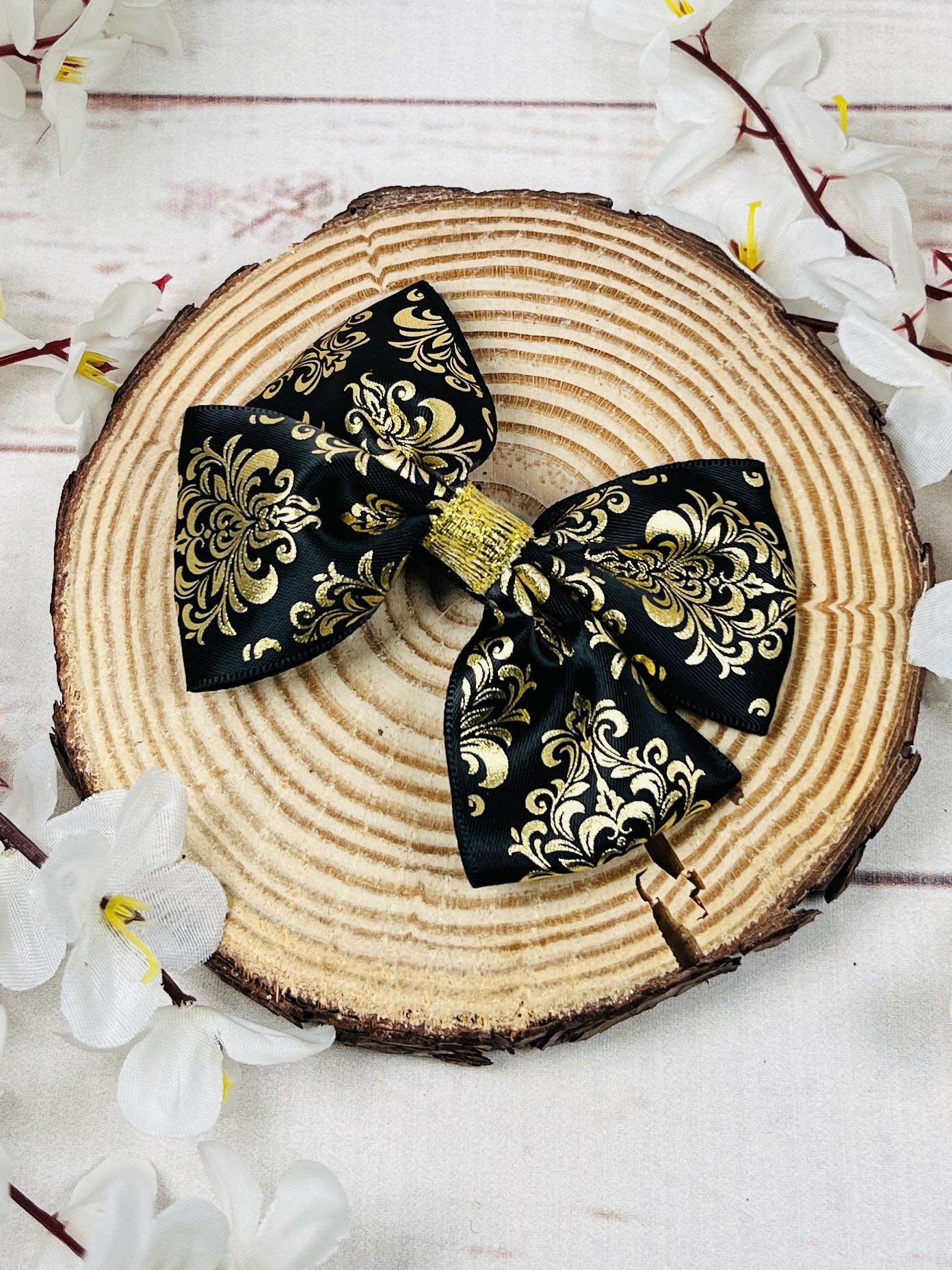 Красив и елегантен аксесоар за коса с панделка в черно и златисто. Черен сатен със стилна плетеница в златисто издават лукс и изящество.