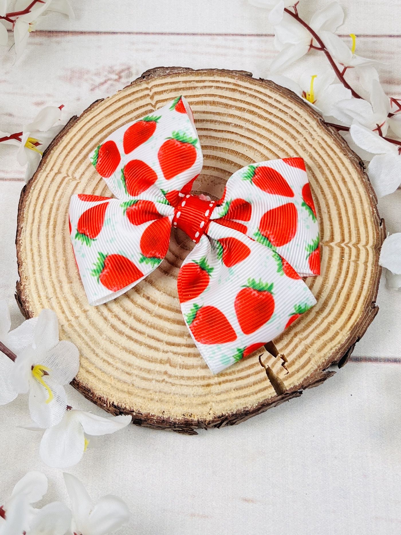 Елегантна и ефектна фиба ръчна изработка с панделка. Ярко червени ягоди блестят под лятното слънце, тази фиба излъчва изтънченост и празничност.