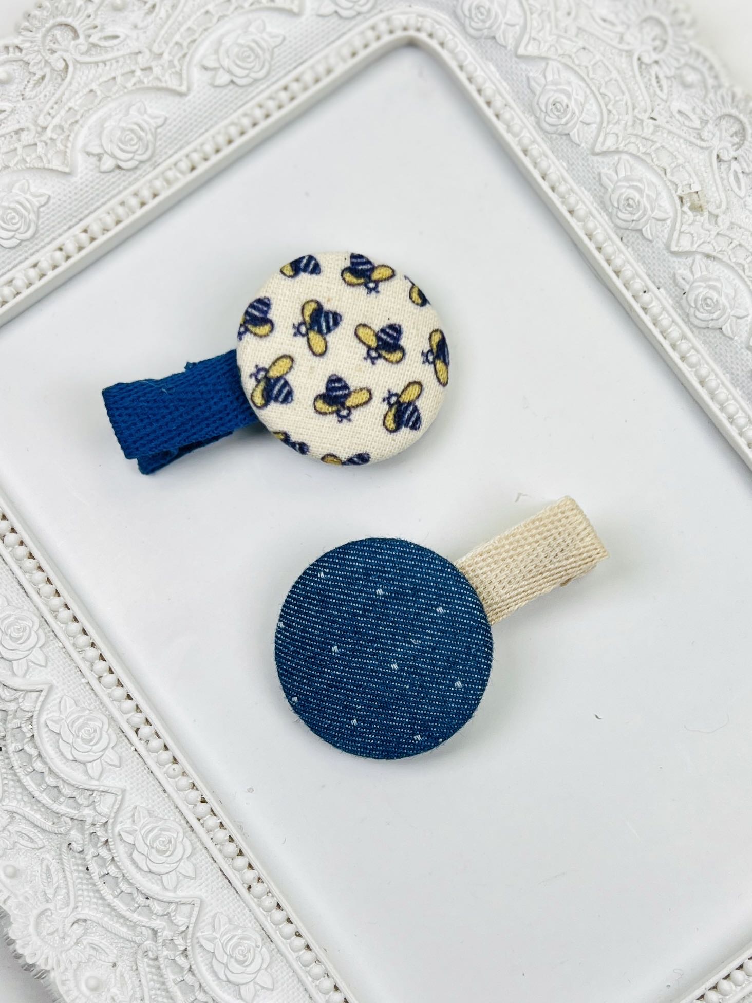 Малки пчелички надничат от фиби с копчета ръчна изработка. Весел десен и дънково копче могат да красятлюбимата коса.