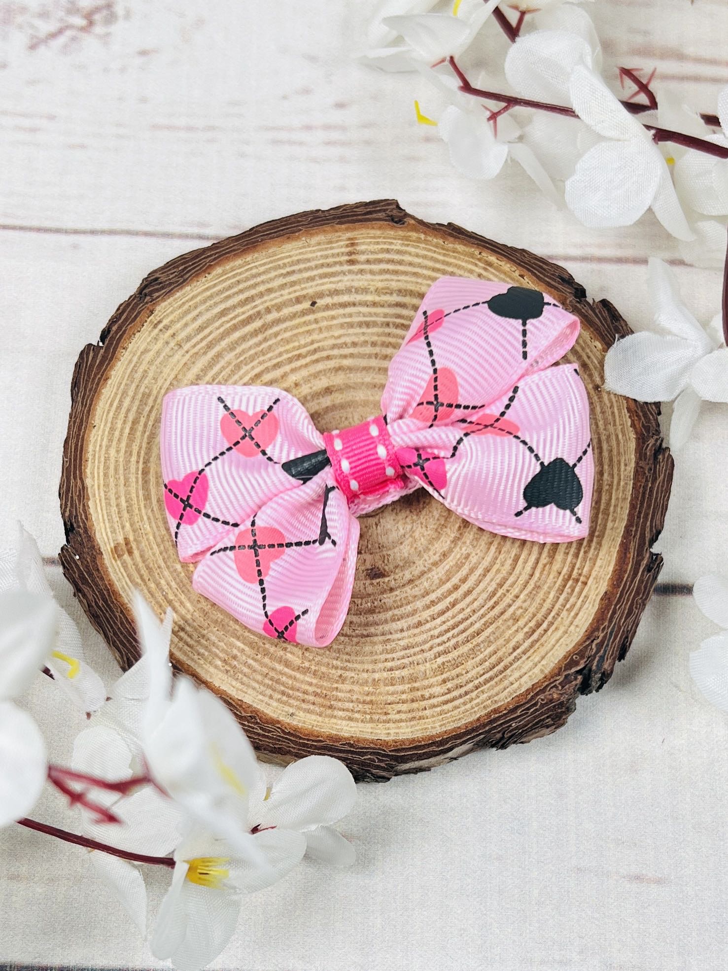 Сладка фиба ръчна изработка в розово с разноцветни сърца. Стилен аксесоар за коса за всеки ден и повод.