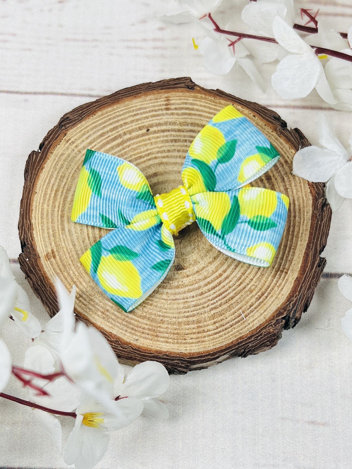 Фиба с панделка ръчна изработка в синьо с лимони. Като красива градина с лимонови дръвчета тази нежна фиба ще се впише във всеки тоалет.