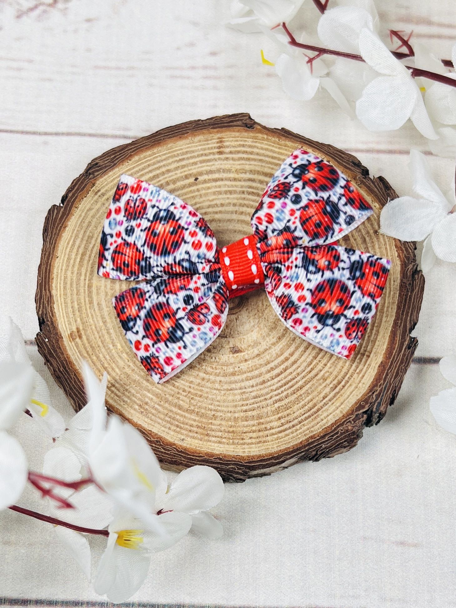 Нежна фиба с панделка в бяло с пърхащи калинки. Весел аксесоар за коса за малки и големи деца.