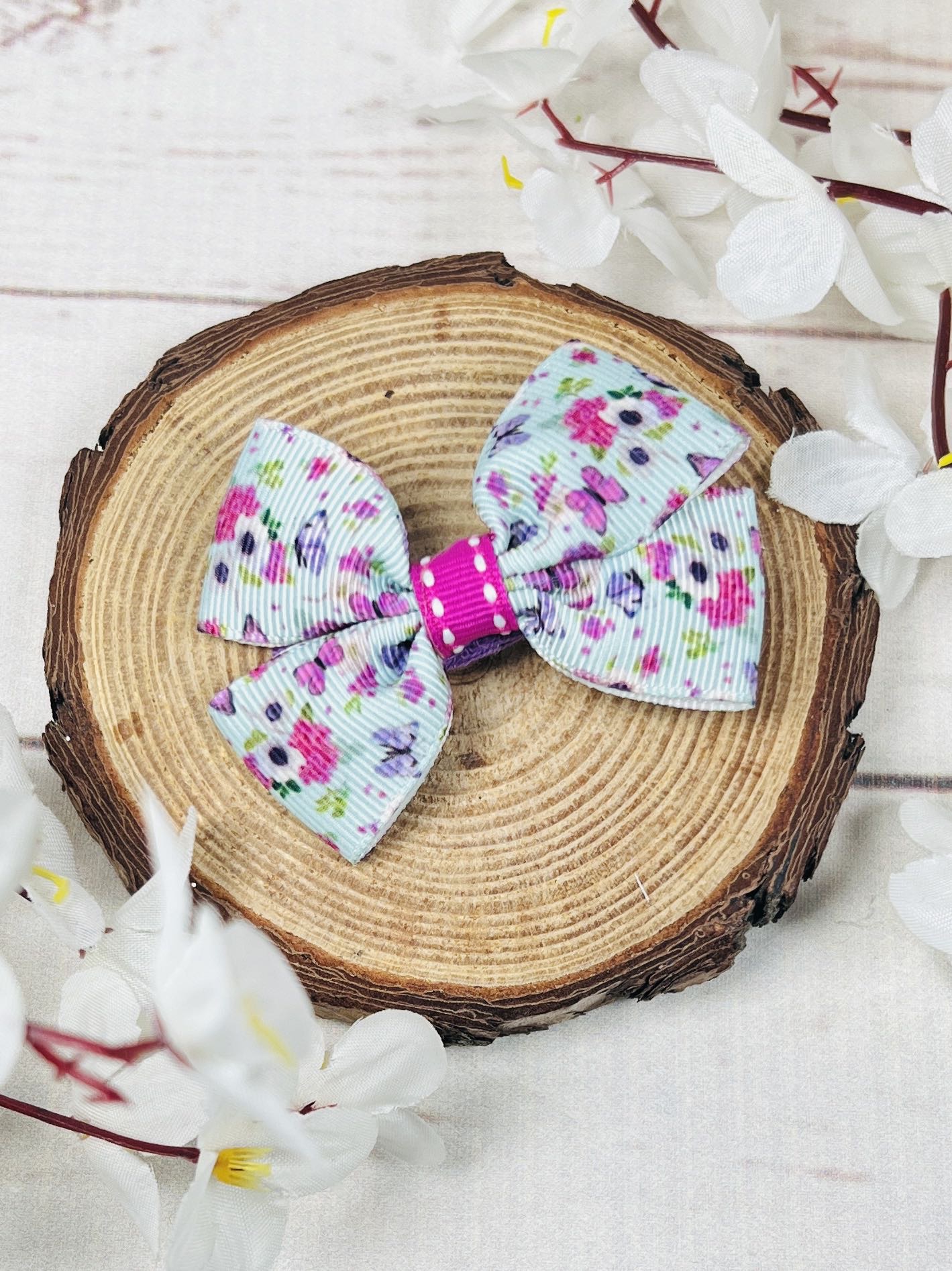Елегантна фиба за коса ръчна изработка.Сини цветя като цяла градина се съчетават в нежна фиба. Стилен аксесоар за коса за всяко момиче.