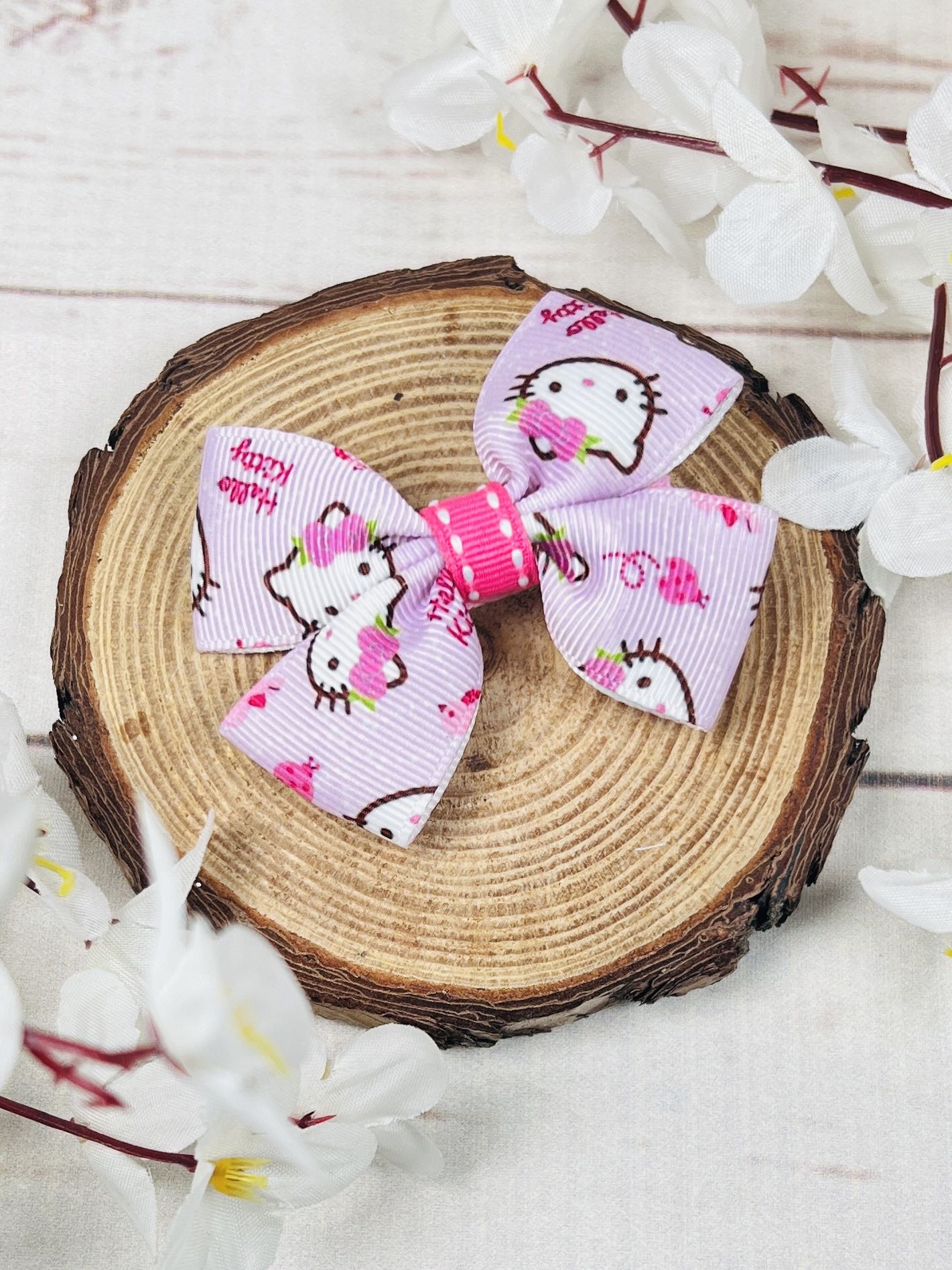 Нежна ръчно изработена фиба с панделка обсипана с котета Хелоу Кити. Феерия от красота за любимата глава. Ефектен аксесоар за всеки повод.