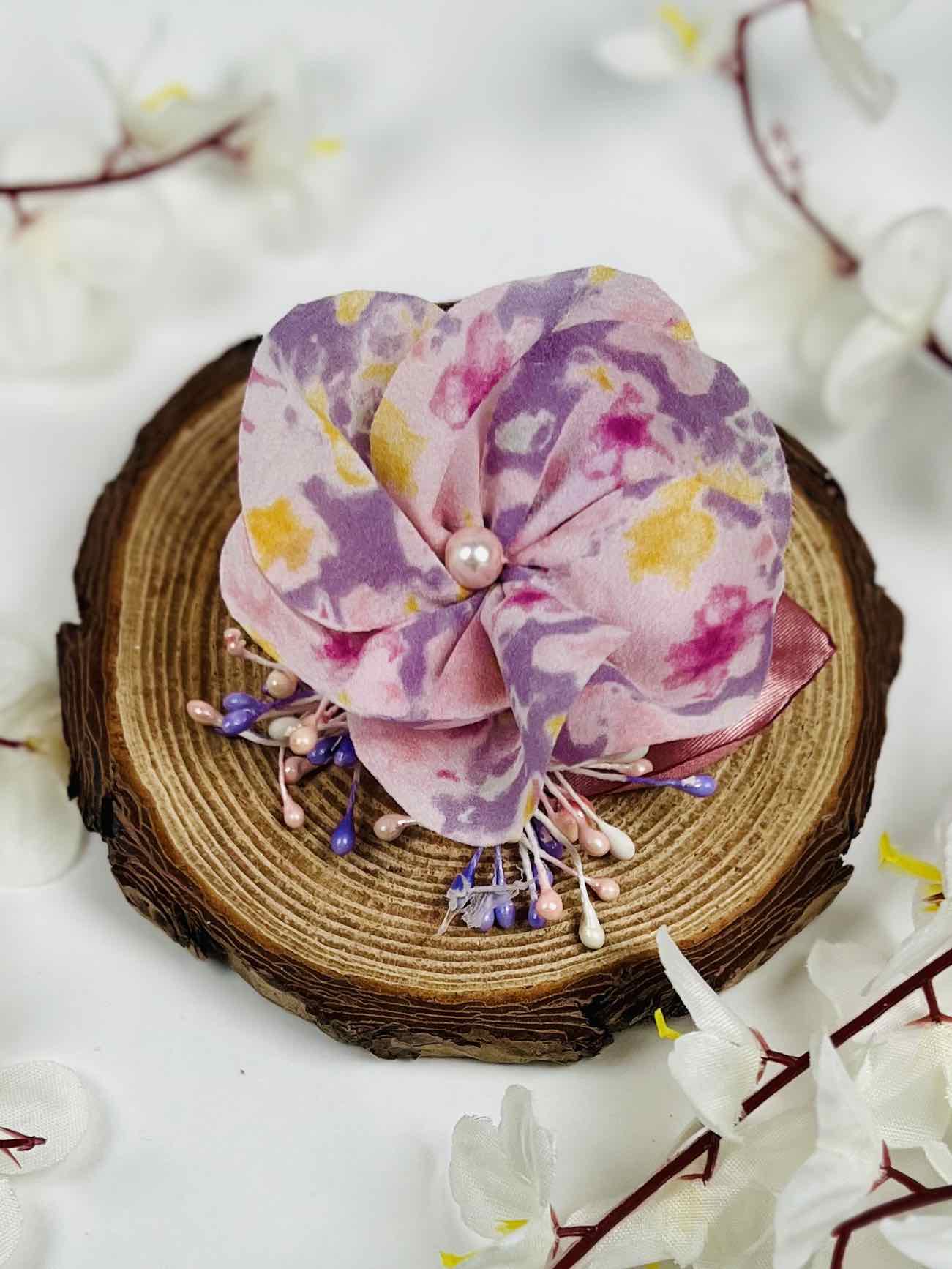 Много ефектна фиба с цвете в преливащи красиви лилави цветове. Стилен аксесоар за коса за летни плажове и разходки.