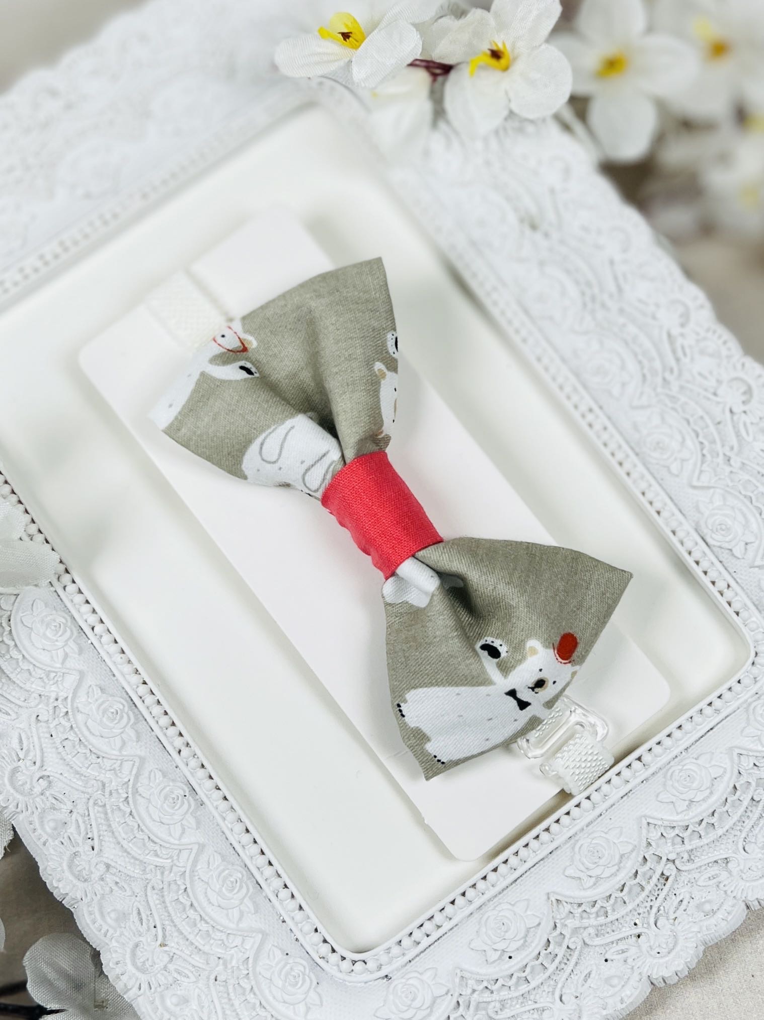 Ръчно изработена весела детска папионка с мечета. Кремава с ярки мечоци, забавна и стилна папионка за малки младежи, деца и бебета.