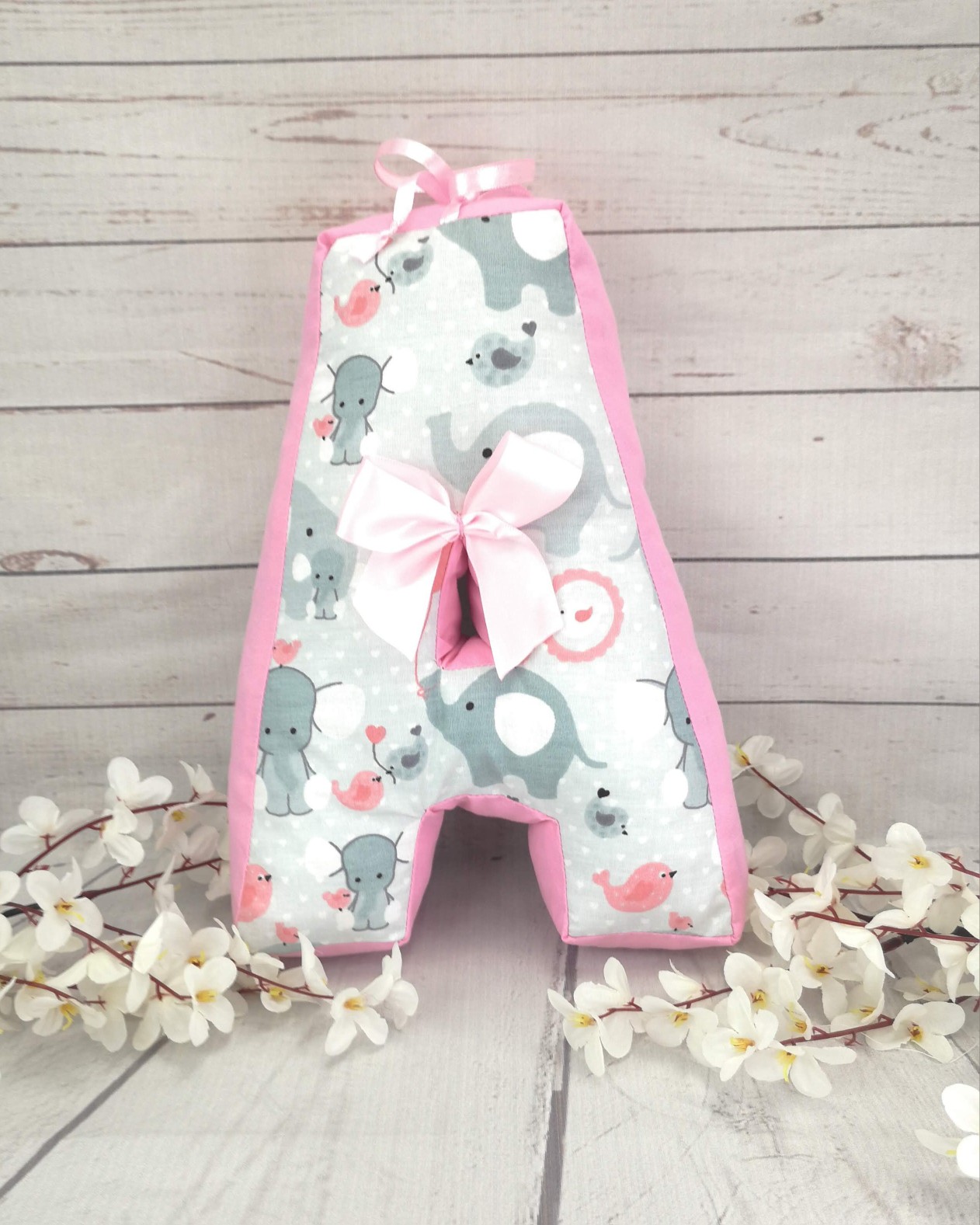 Сладката ръчно изработена буква за детска стая може да се изработи в желани от Вас цветове и с уникална декорация. Единична или като цяло именце, буквите от плат ще радват всяко дете.
