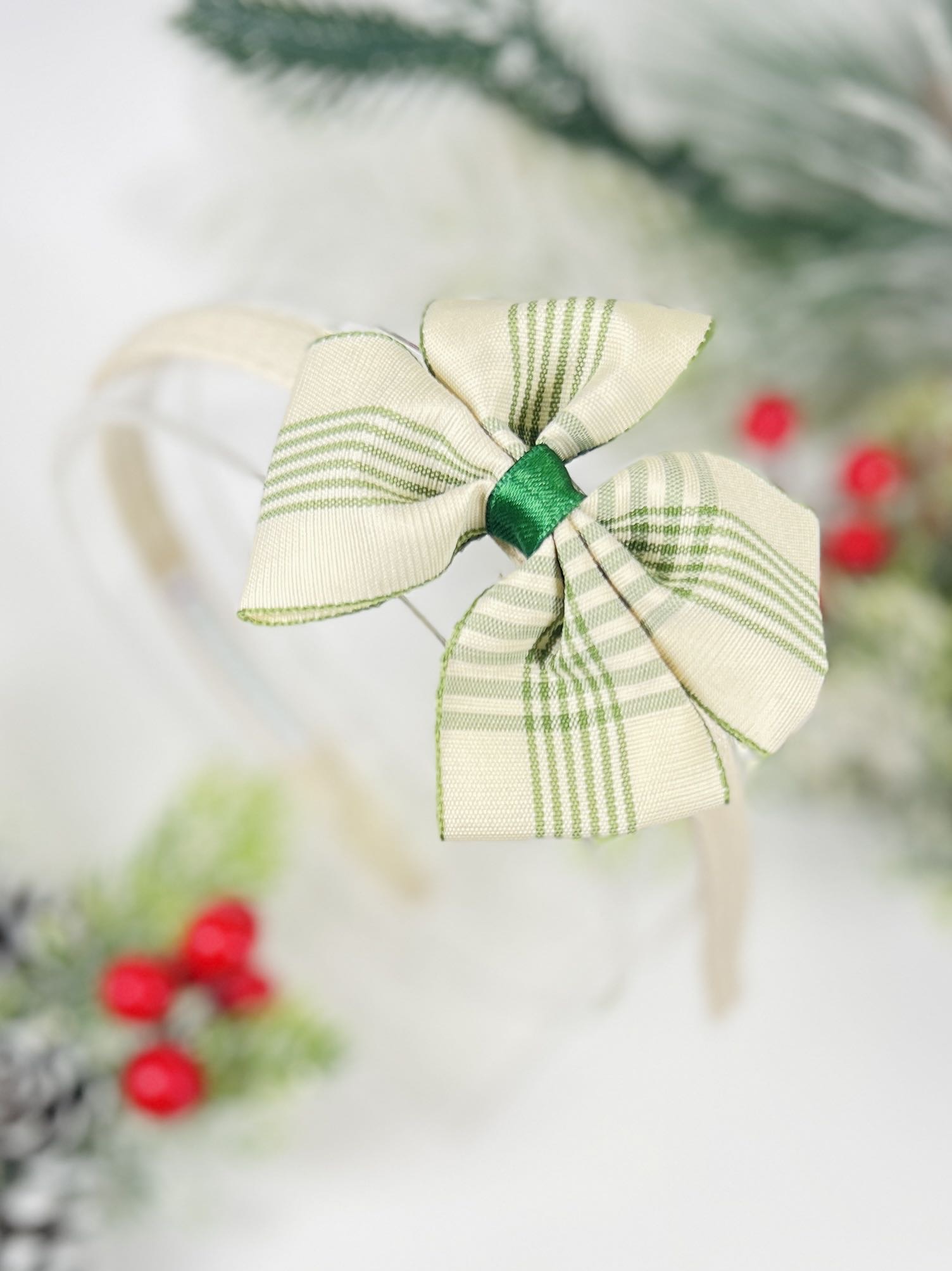 Ефектна ръчно изработена коледна диадема с подвижна фибичка. Весела и свежа диадема за всеки ден или специалните моменти. Фибичката с декорация е прикрепена към диадемата чрез специално иличе и може да се ползва както самостоятелно, така и с облечената с плат основа. Така на една диадема може да се поставят най-различни фибички според тоалета и повода. Стилен аксесоар за Вашите деца в Коледната нощ.
