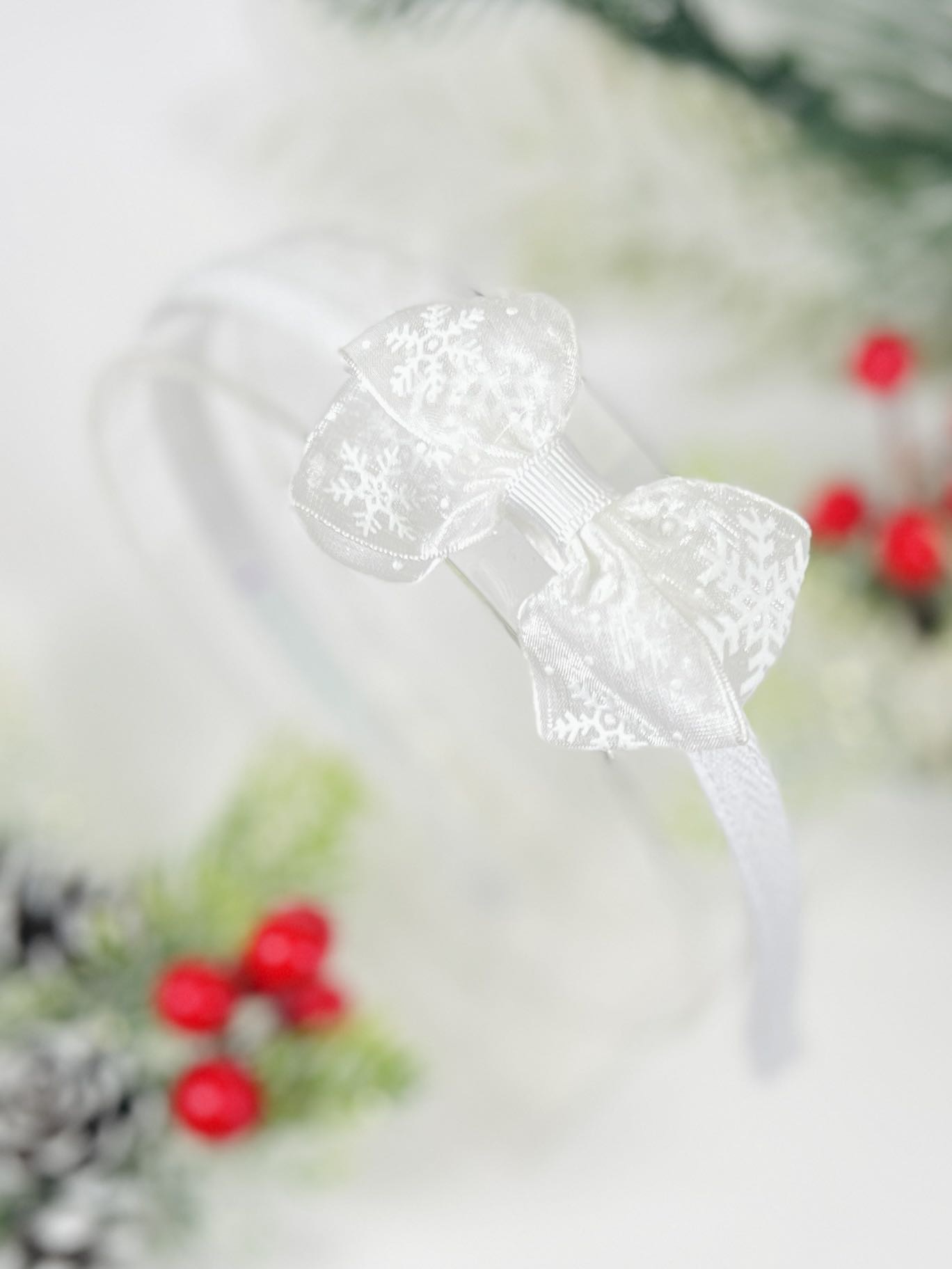 Ефектна ръчно изработена коледна диадема с подвижна фибичка. Весела и свежа диадема за всеки ден или специалните моменти. Фибичката с декорация е прикрепена към диадемата чрез специално иличе и може да се ползва както самостоятелно, така и с облечената с плат основа. Така на една диадема може да се поставят най-различни фибички според тоалета и повода. Стилен аксесоар за Вашите деца в Коледната нощ.